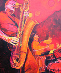 Baritonsax en drummer